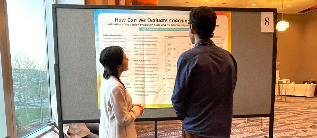 ポスター発表では、コーチングの研究で世界を牽引するCase Western Reserve UniversityやOxford Brookes Universityをはじめ、欧米やアフリカを中心とした研究者が研究結果を発表しました。発表内容は、医療領域でのコーチングに限らず、エグゼクティブ・コーチングやピアコーチングなどの多領域に触れられていただけでなく、研究の種類も、コーチングの理論モデルの開発やアセスメント(尺度)開発、介入・実証研究など、多岐にわたっていました。