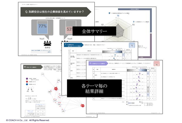 アンケート結果をもとに、現状把握と企業の未来に向け取締役会の役割やコミュニケーションの再解釈を共創するセッションを集合型または1on1 で行います。