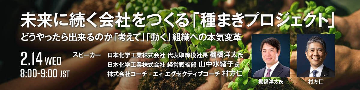 コーチ・エィは、日本化学工業株式会社をお招きし、組織変革プロジェクトに関する対談イベントを2024年2月14日(水)に開催いたします。