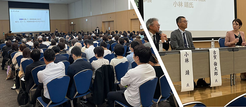 ランチョンセミナーでは、社会医療法人同心会古賀総合病院 理事長 古賀倫太郎氏、岡崎市民病院 院長 小林靖 氏をお招きし、前半では、医療現場に求められるリーダー開発や職員間の関係構築に焦点を当て、その実践内容や知見を発表いただいたほか、後半では、当社の執行役員である大塚志保とともに、「対話」がもたらす組織変革の可能性について、鼎談形式で意見交換を行いました。