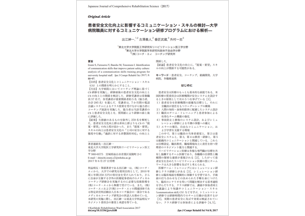 患者安全文化向上に影響するコミュニケーション・スキルの検討