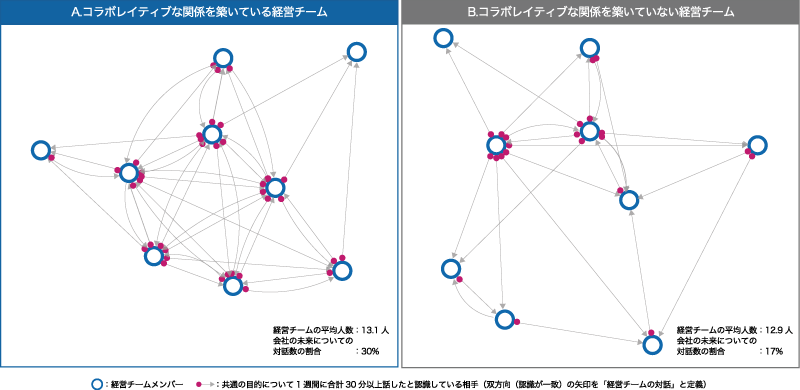 リーダー同士のつながりが強い会社と弱い会社では、社長の行動に大きな違いがある