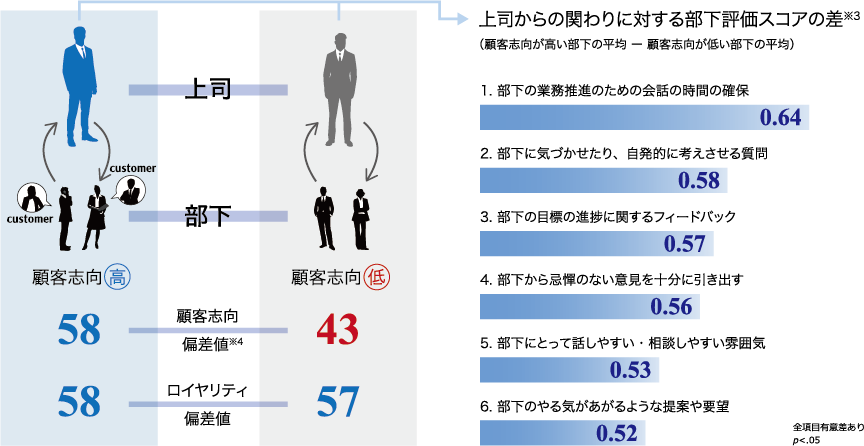 会社へのロイヤリティが高い部下の視点を顧客に向ける関わり